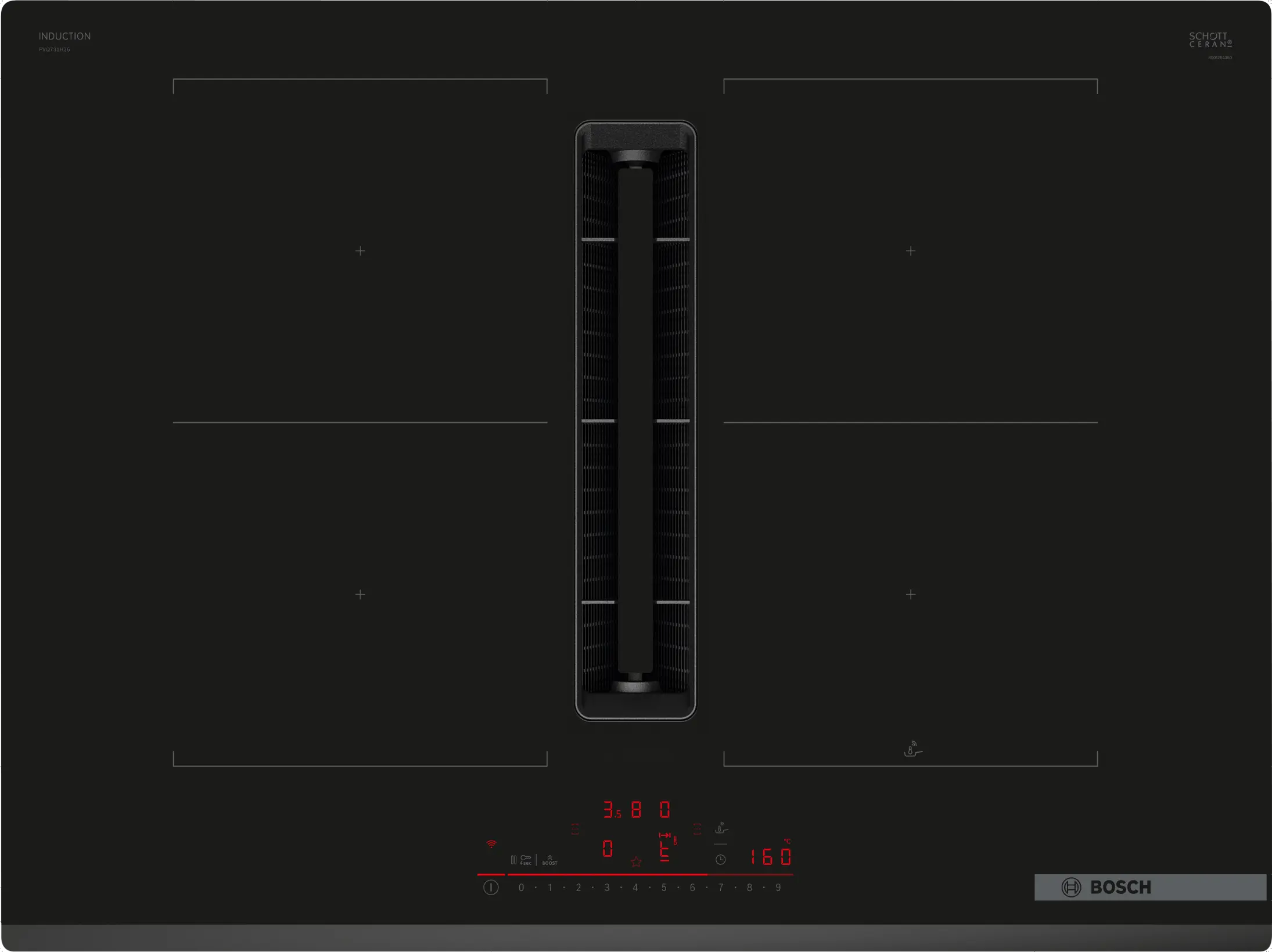 Seri 6 Kompor induksi dengan sitem ventilasi terintegrasi 70 cm Permukaan dipasang dengan bingkaiPVQ731H26E