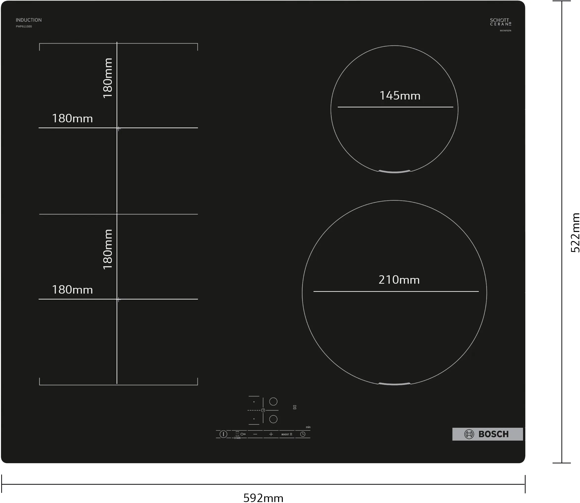 Seri 4 Kompor induksi 60 cm Permukaan dipasang dengan bingkaiPWP611BB5E