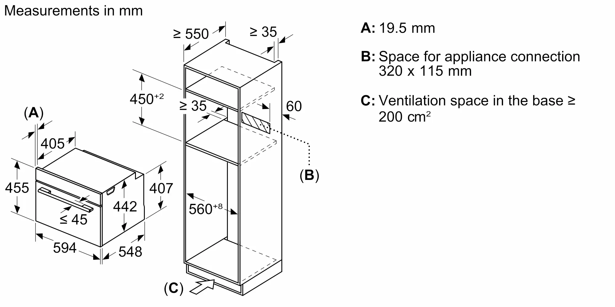 Seri 8 Oven built-in compact dengan fungsi microwave 60 x 45 cm HitamCMG778NB1