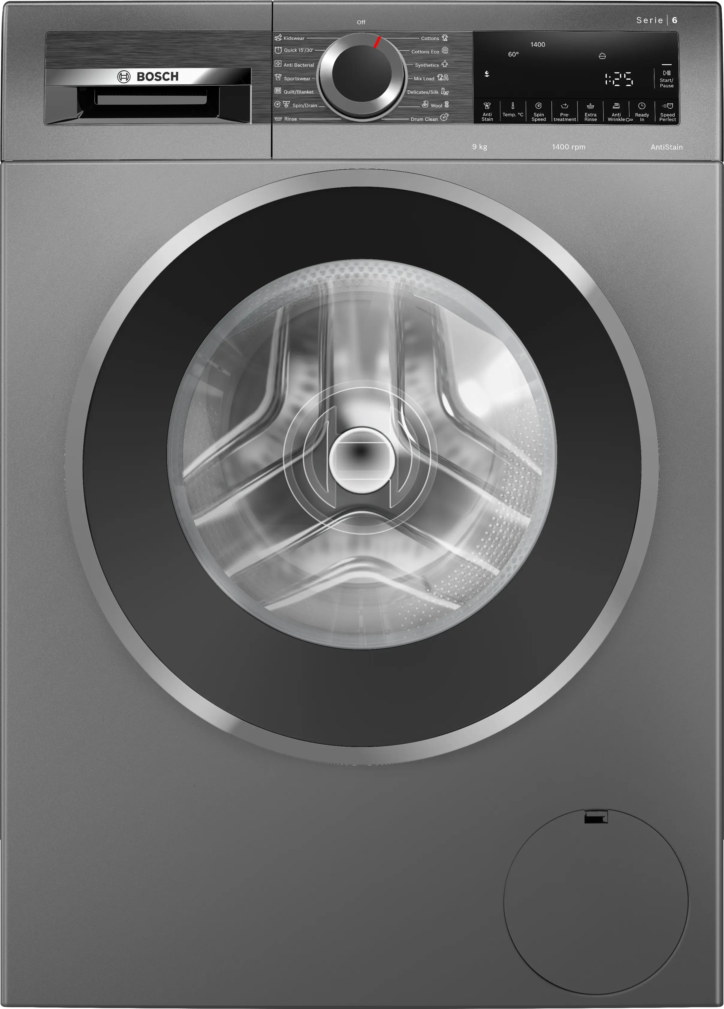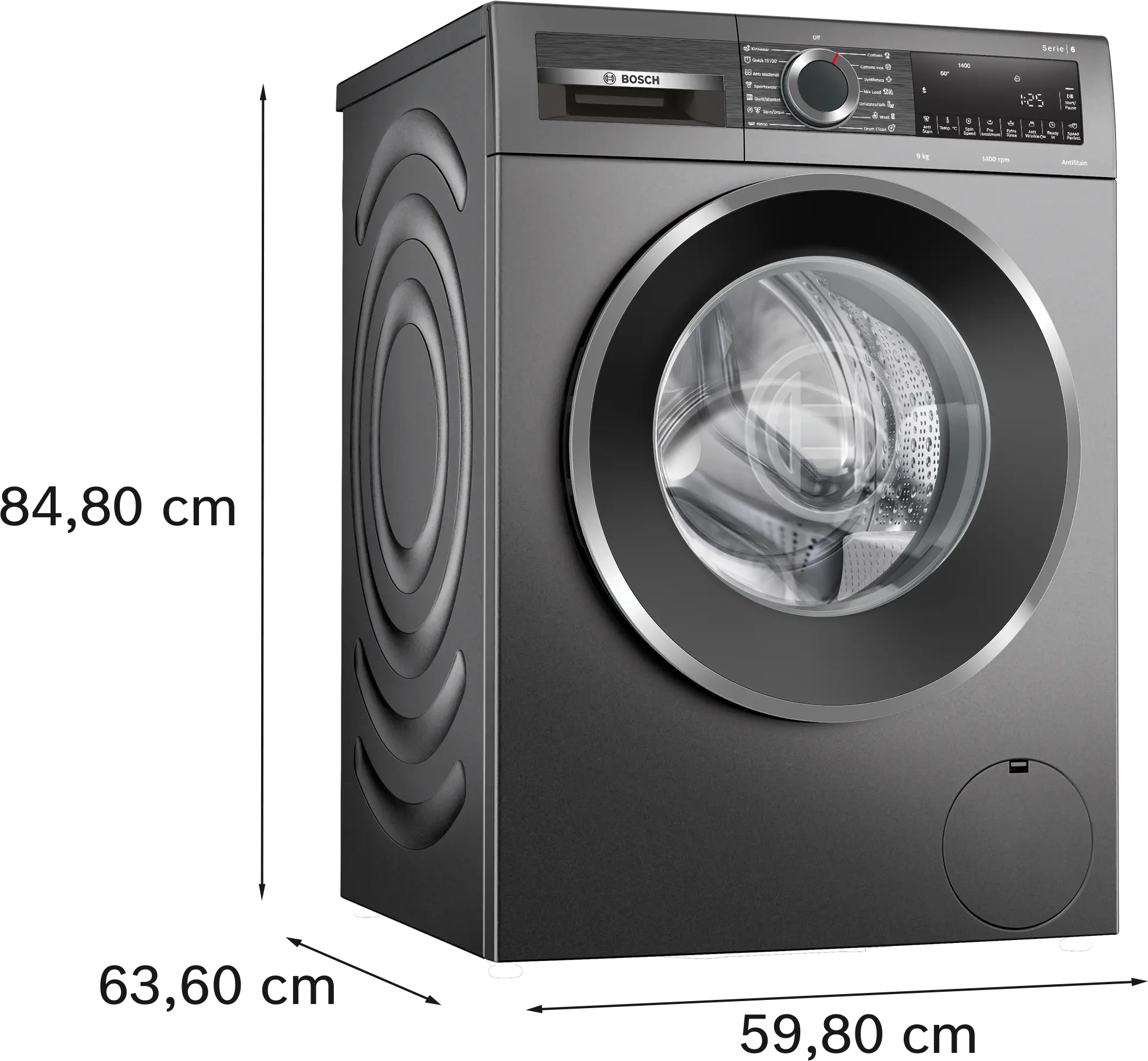 Seri 6 Mesin cuci, bukaan depan 9 kg maximum 1400 rpm, Cast iron greyWGG444E1ID